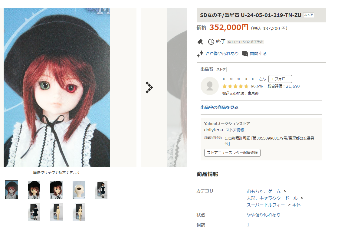 相場:過去作女の子「翠星石」352000円にて取引あり