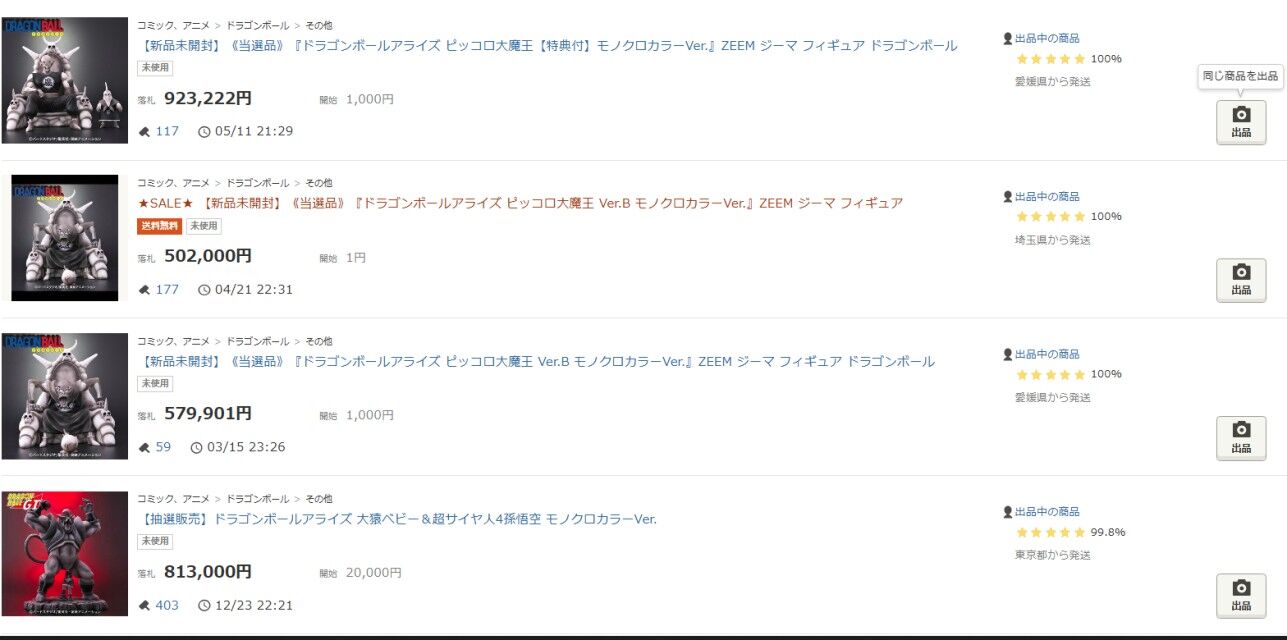 相場:別キャラモノクロカラー50~90万円の取引あり