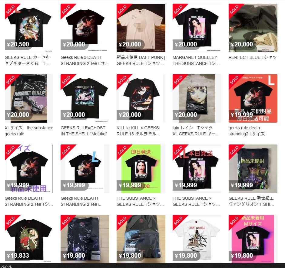 GEEKS RULEのTシャツは作品によって相場が大きく変わってきます。